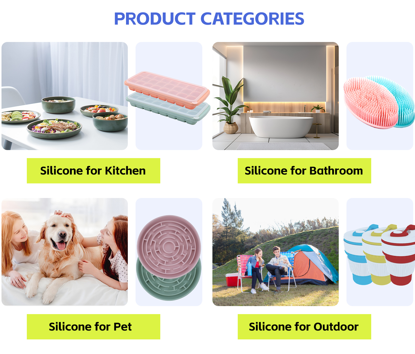 主な製品:シリコン断熱パッド、シリコンドレンマット、シリコンアイスモールド、シリコン食器洗いブラシ、シリコンカウンタートップ